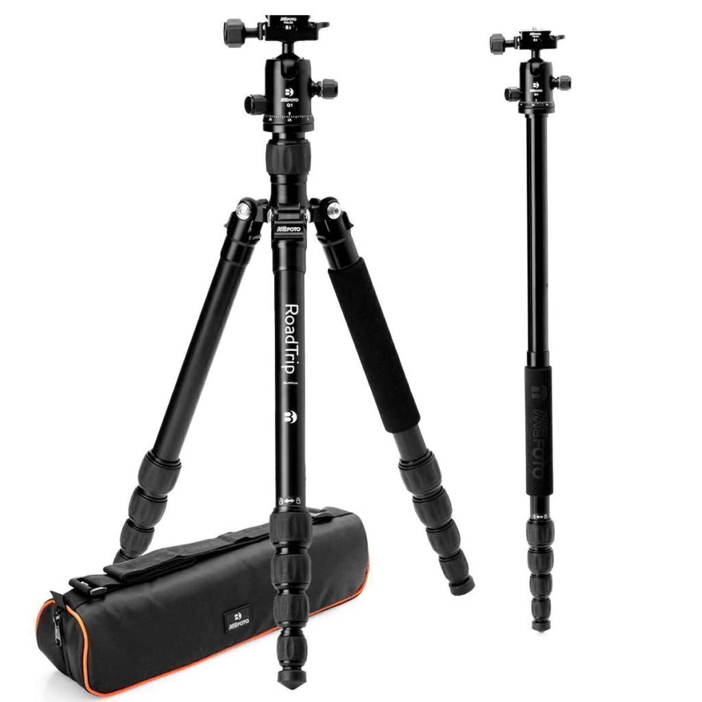 O Tripé MeFOTO RoadTrip Classic Série 1 com Monopé e Kit de Cabeça Esférica da Benro oferece um robusto e compacto tripé de liga de alumínio que se estende até 156,5 cm, suporta até 8 kg e se dobra para um compacto 39,1 cm para fácil armazenamento ou viagem.