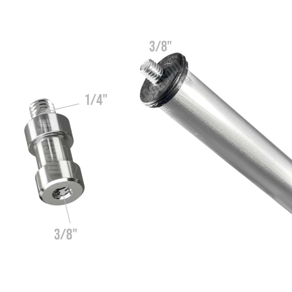 Rosca: 3/8” com adaptador Pino 5/8” com rosca 1/4”
