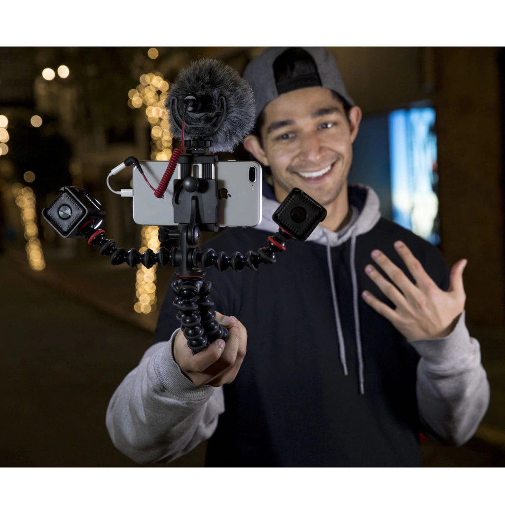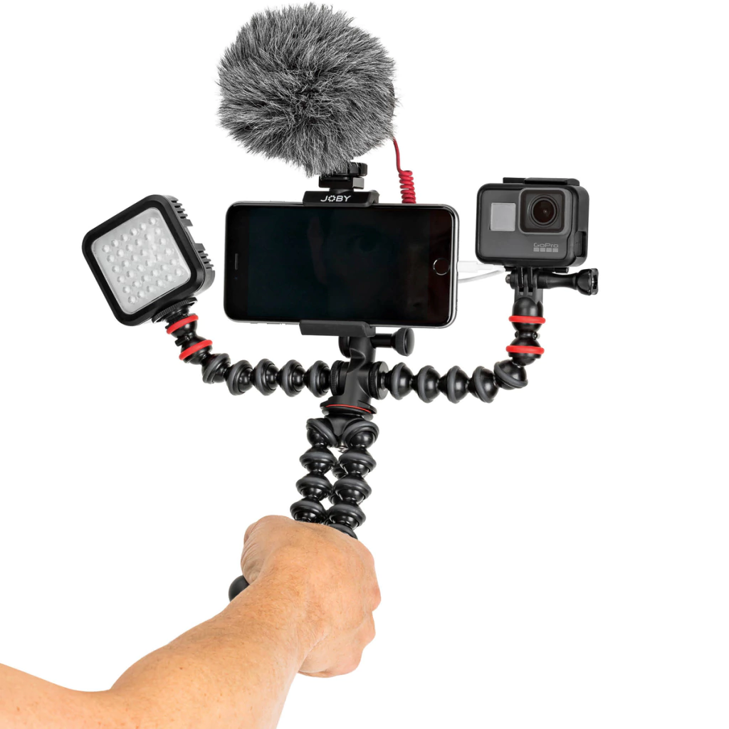 Crie vídeos, vlogs e faça lives no YouTube Twitch, Mixer de nível profissional com o GorillaPod Mobile Rig de Joby.