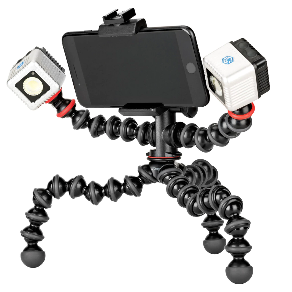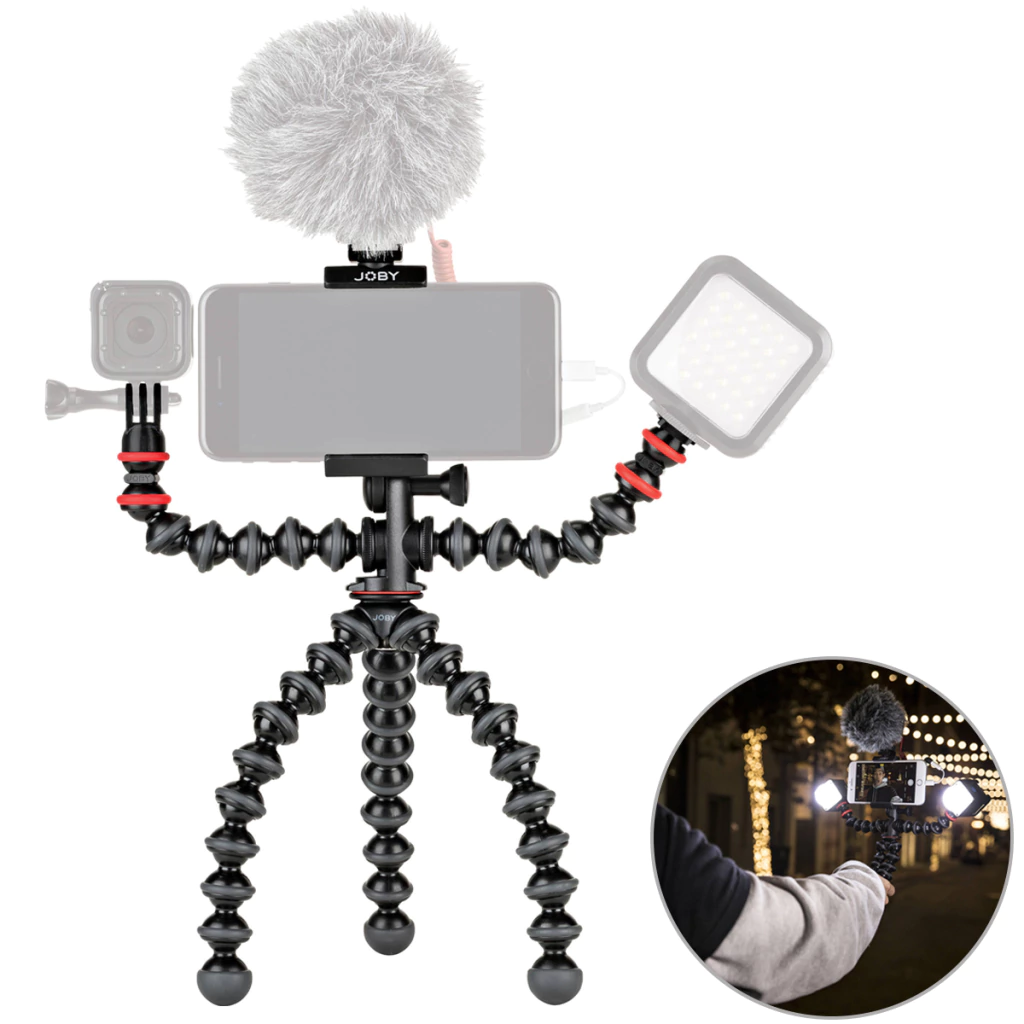Crie vídeos, vlogs e faça lives no YouTube Twitch, Mixer de nível profissional com o GorillaPod Mobile Rig de Joby.