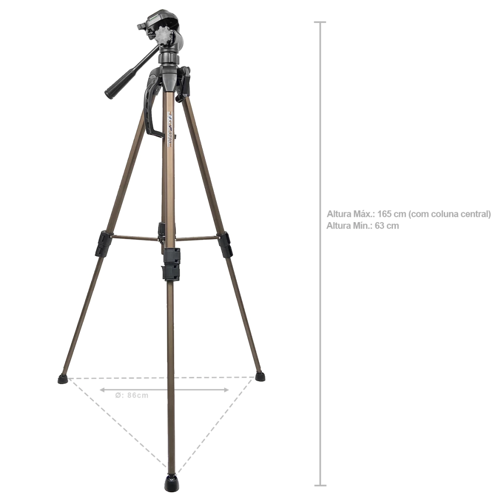 Tripé 3770 da Greika, feito em alumínio, possui o perfil das pernas em "U", coluna central com trava de segurança, suporte de mão antiderrapante, bolha de nível e engate rápido.