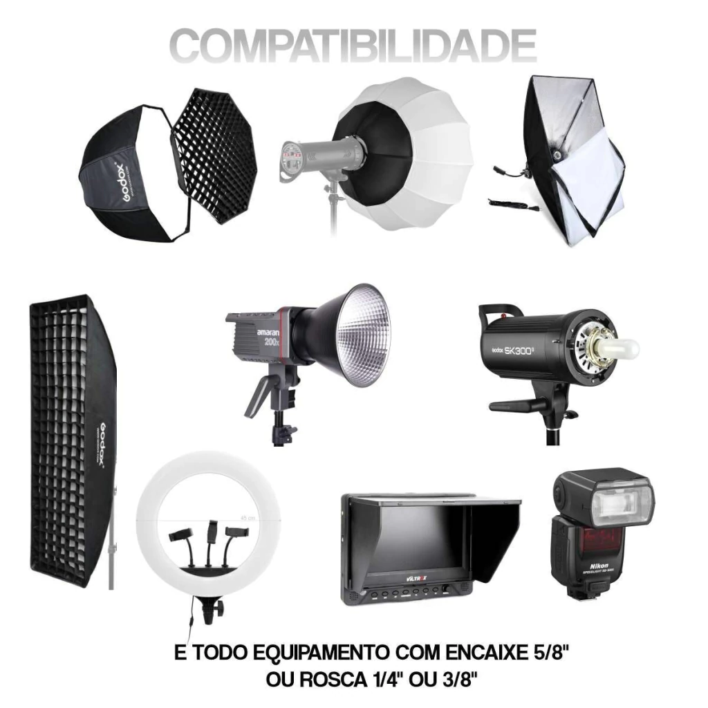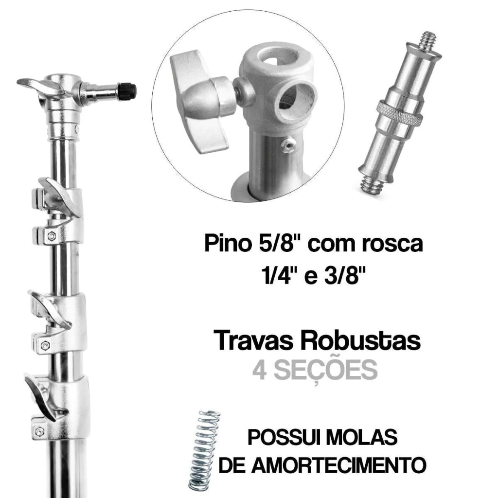 Encaixe: Pino universal 5/8” com rosca 1/4" e 3/8”