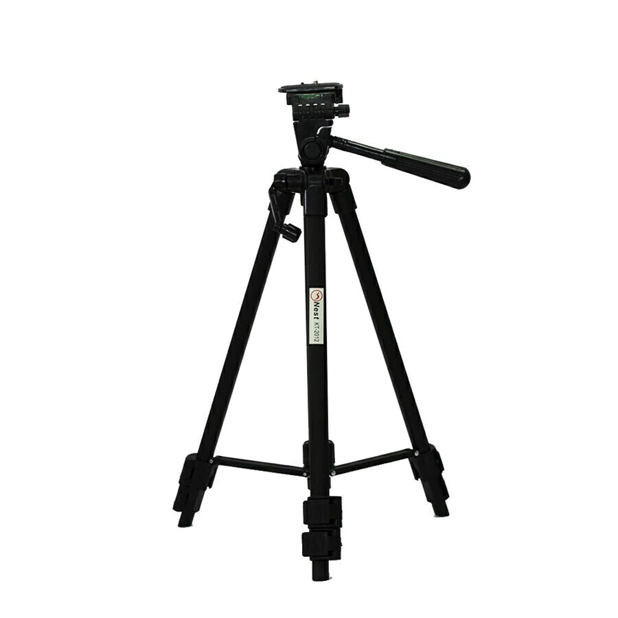 Tripé Nest KT-2012 é ideal para quem está iniciando suas gravações e busca um meio fácil e prático de realizá-las, pode chegar até 133cm de altura para câmeras e filmadoras, sua estrutura é composta de alumínio, partes plásticas e borracha, permitindo uma leveza no momento da operação e melhor transição entre ambientes.