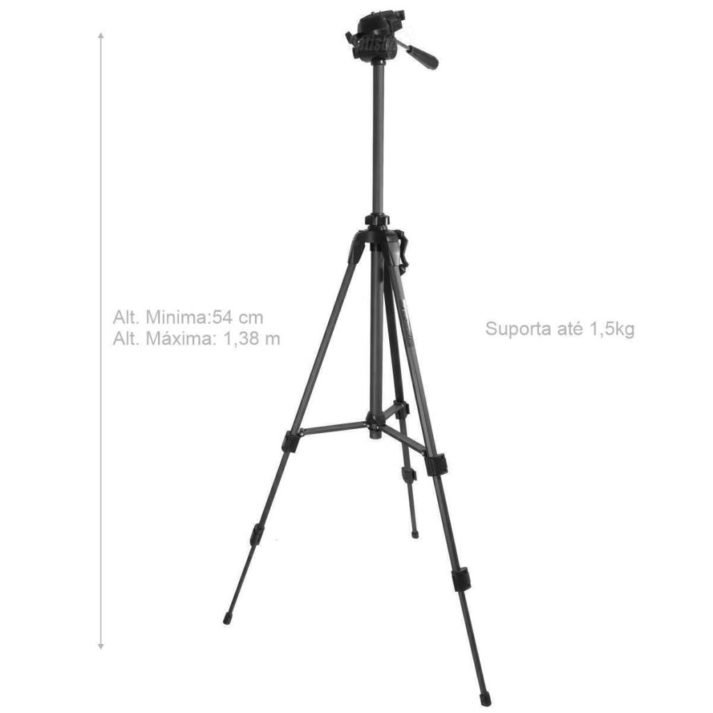 Peso suportado pelo tripe: 1,50 kilos
