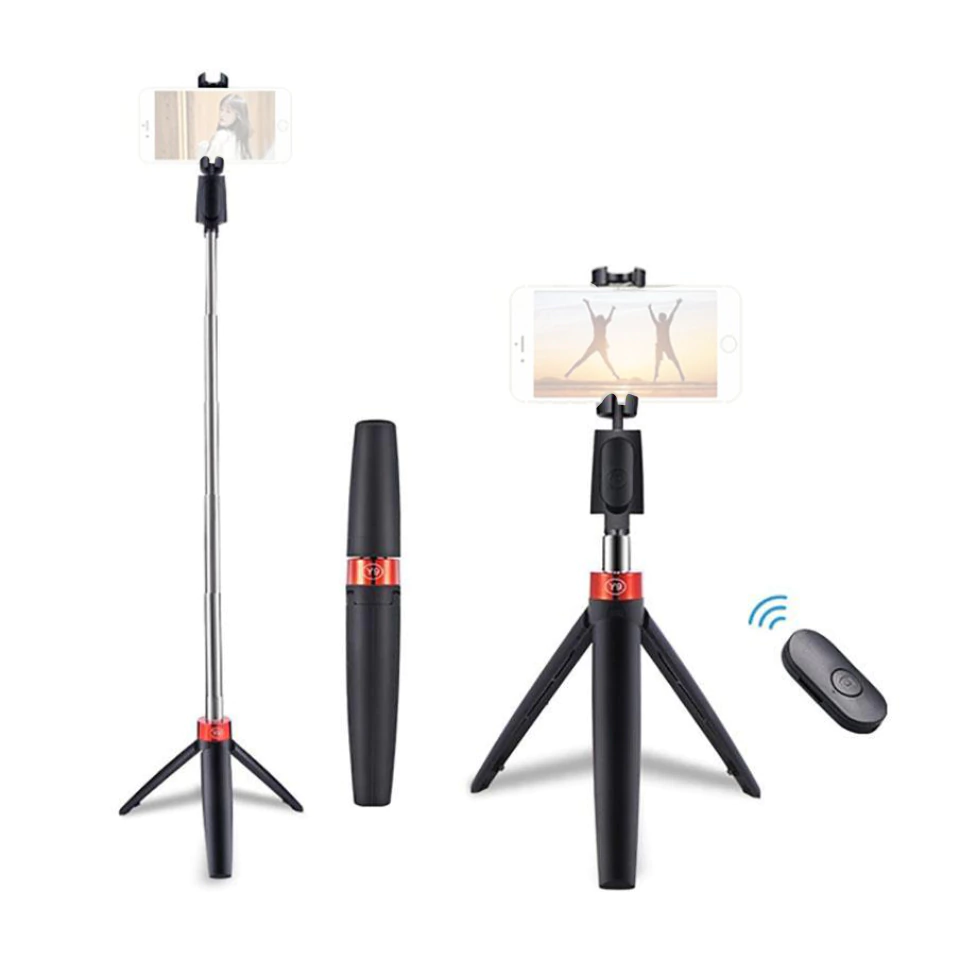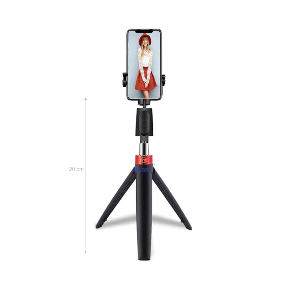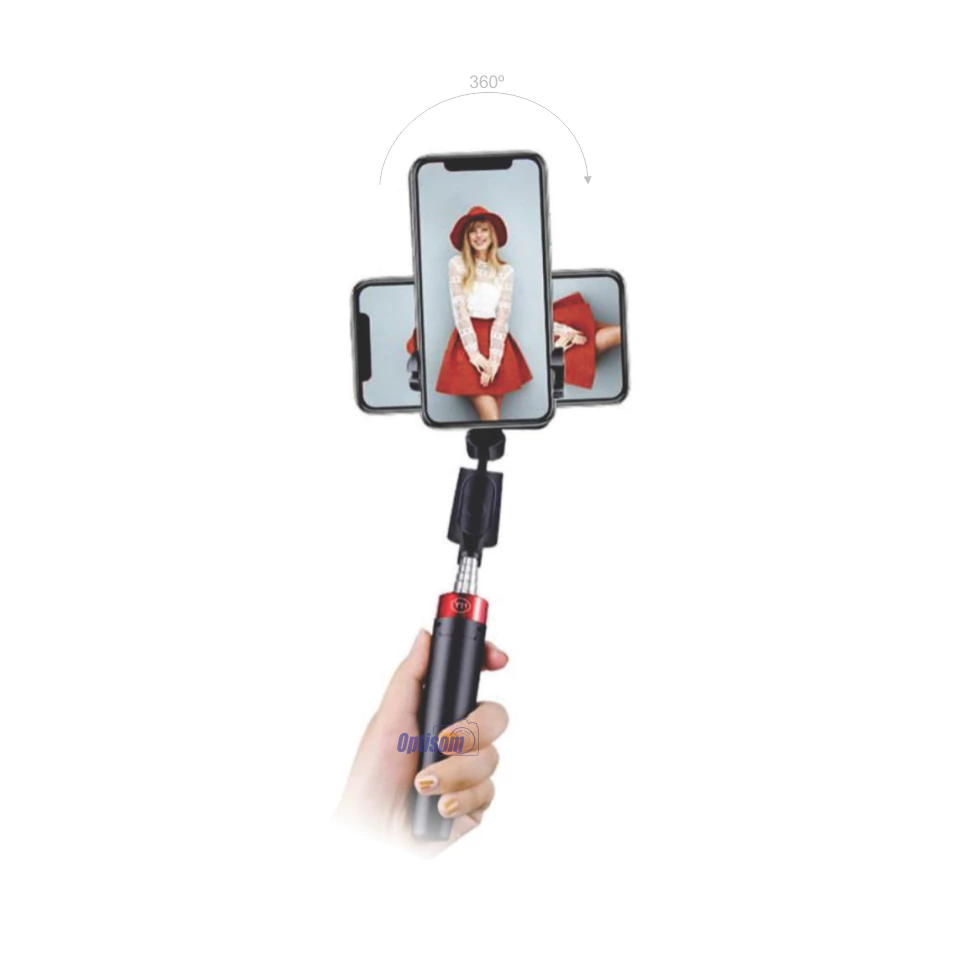 Pode ser usado como bastão de selfie, como tripé e bastão curto de mão.