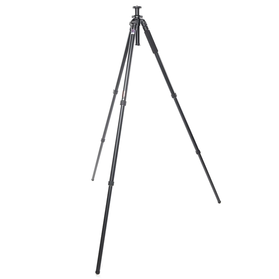 Esse tripé também tem um nível de bolha e uma bússola para orientação.
