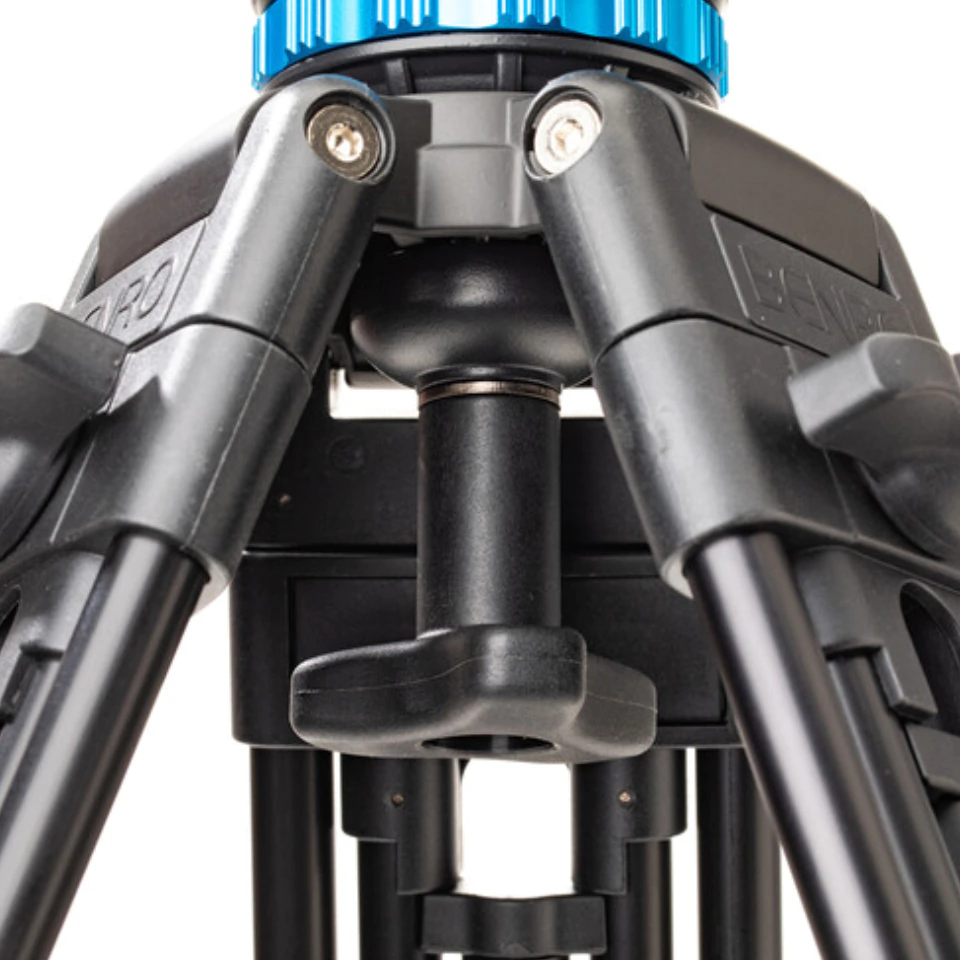 A cabeça possui fluído hidráulico nos movimentos pan 360º e tilt 90º com travas independentes e usa uma placa de liberação rápida deslizante para fixação da câmera com parafuso tamanho 1/4 (universal), nível bolha e conta com um sistema de base nivelamento tipo ballhead.