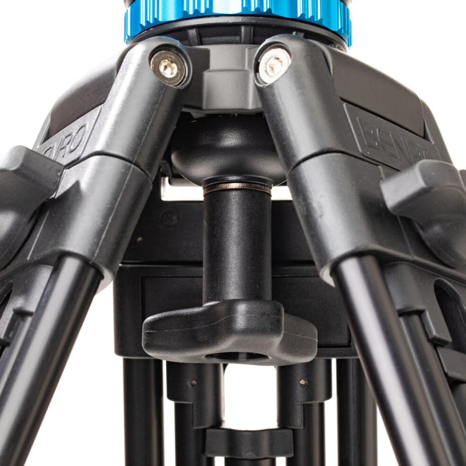 As pernas do tripé de alumínio de estágio duplo do sistema KH25P apresentam travas giratórias para ajustes rápidos e fáceis e incorporam um spreader de nível médio para maior estabilidade.