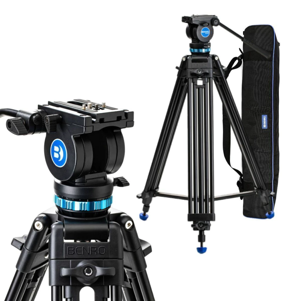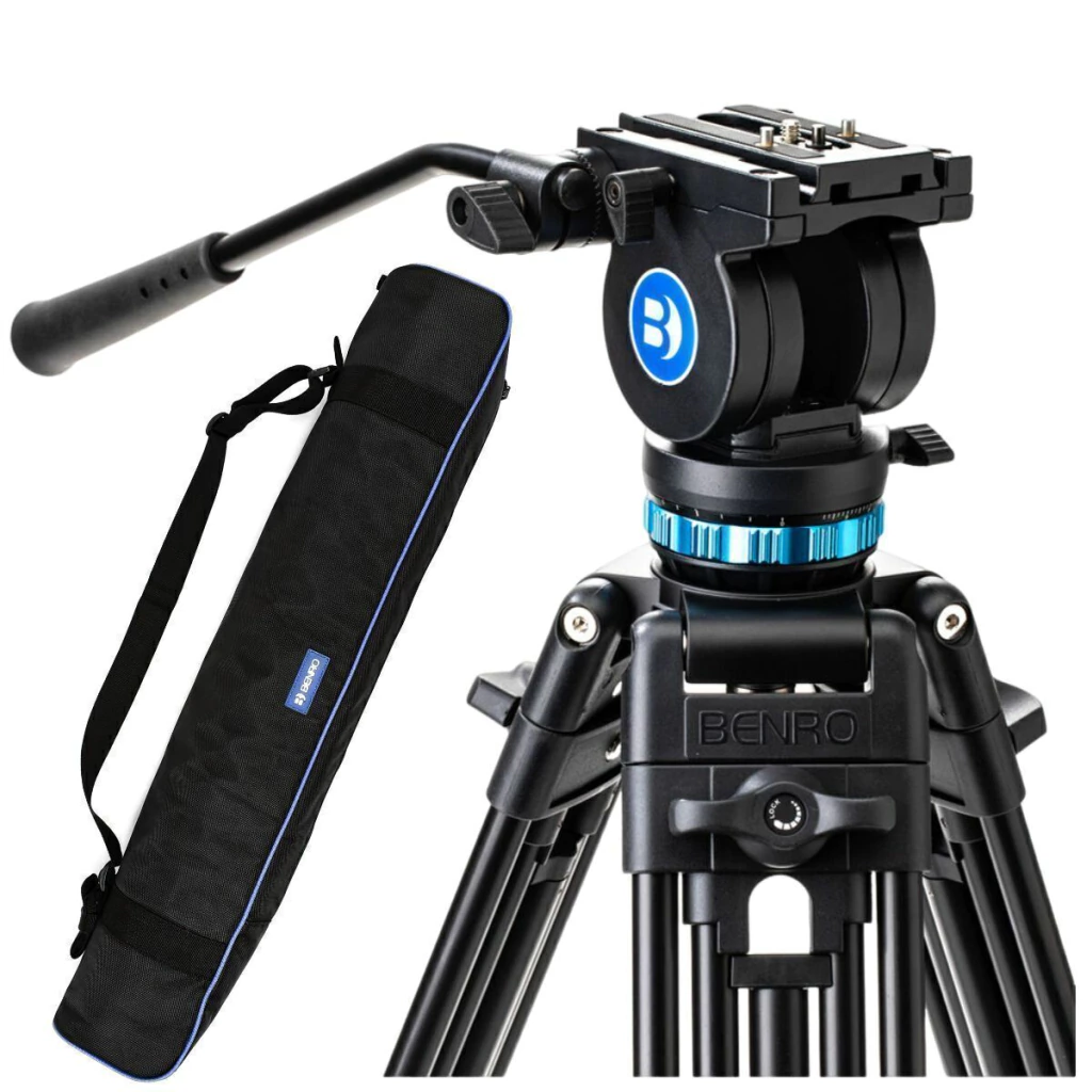 O kit de cabeça de vídeo e tripé Benro KH25P da Benro é perfeito para suportar DSLRs, câmeras mirrorless e câmeras de vídeo.