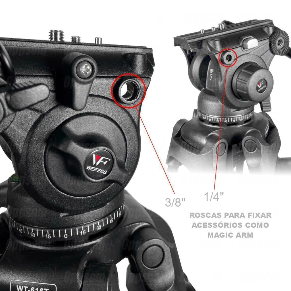 01 Tripé WF616 Weifeng Greika com cabeça hidráulica;