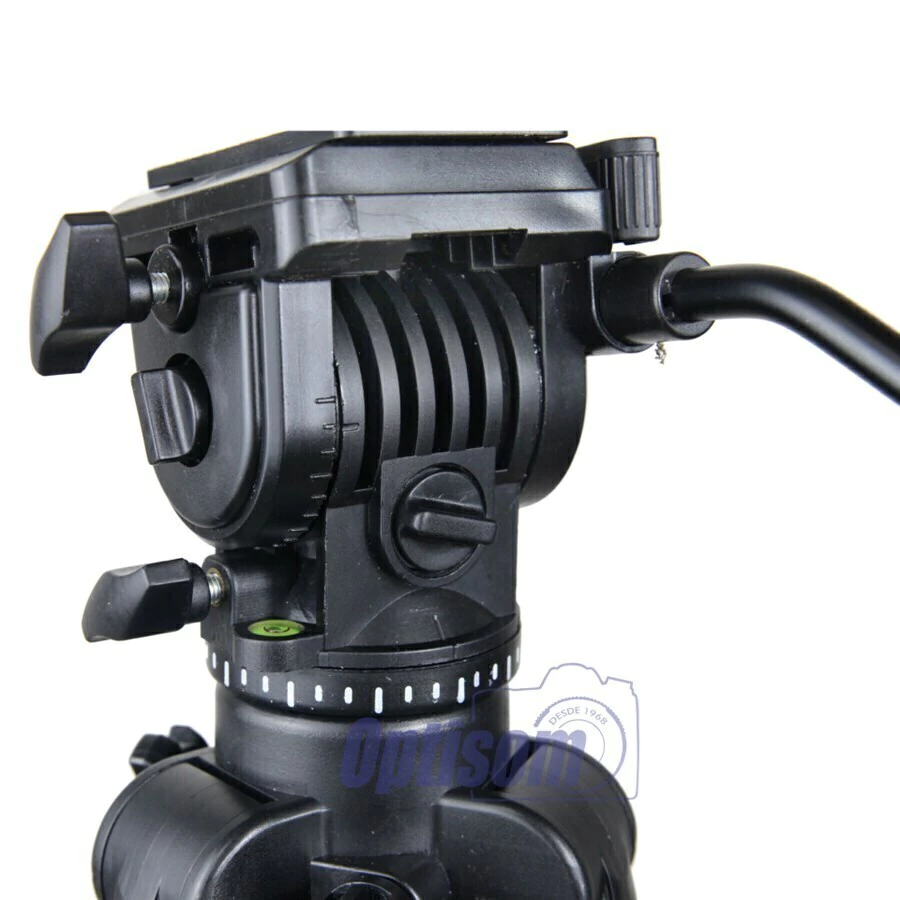 Tripé TR688V com cabeça hidraulica substituto do modelo anterior TR-588V, movimentos suaves, tripe de aluminio com partes plasticas, cabeça com nivel bolha e engate rapido, alavancas de fechamentos das pernas tip flip de duas seções, pes de borrachas para maior estabilidade.