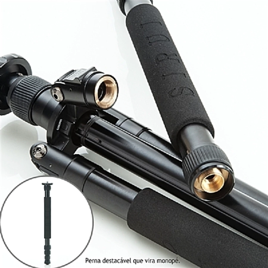 Podemos destacar o menor peso, tripé de 1805 g com maior capacidade de carga de até 15 kg.
