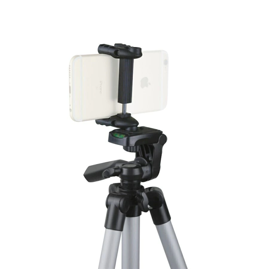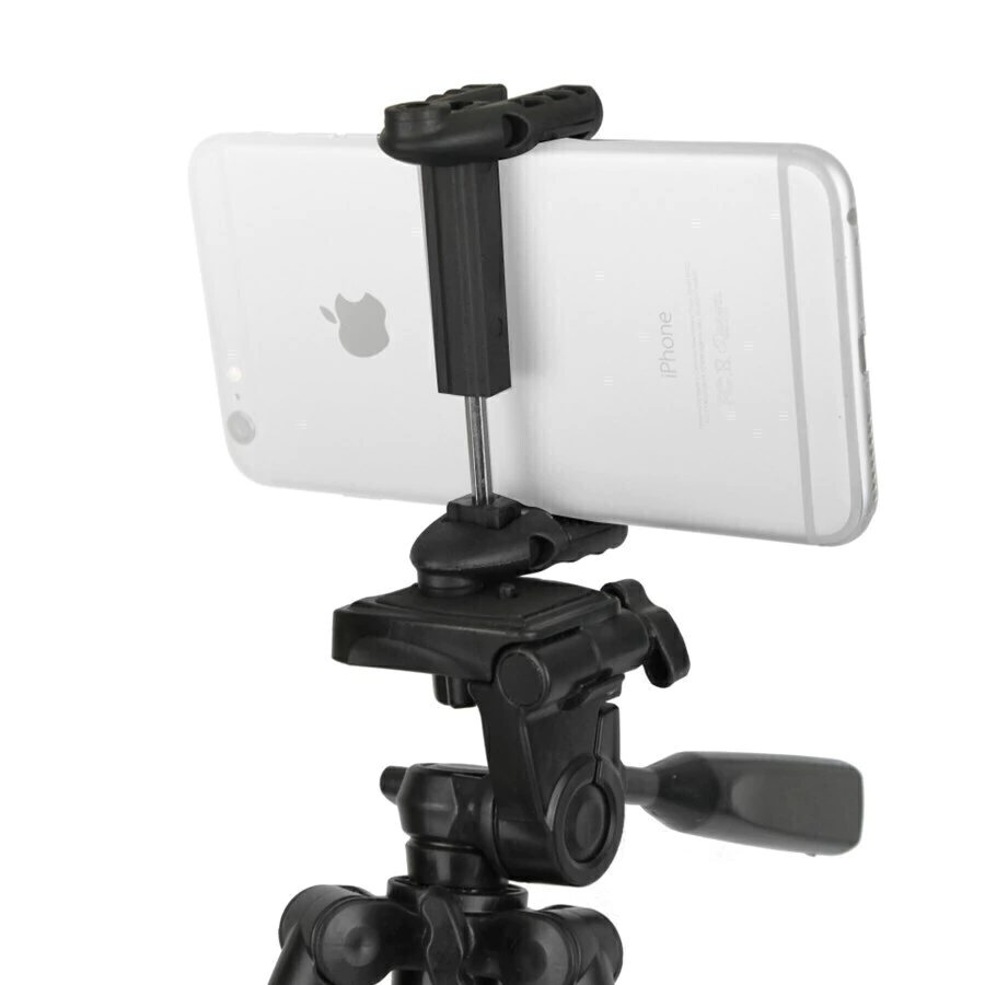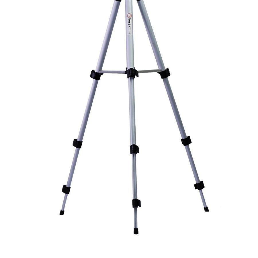 Tripé Nest KT-3110 para celular, composto de alumínio, partes plásticas e borracha com uma armação que tem altura mínima de 35 cm e chega até 105cm de altura quando totalmente aberto, considerado leve por pesar somente 310 gramas é ideal para realização de vídeos caseiros e para quem procura algo prático e rápido de utilizar.