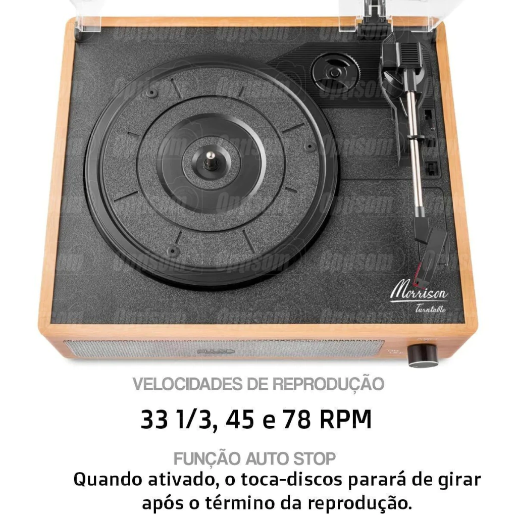 Velocidades: 33 1/3, 45 e 78 rpm.